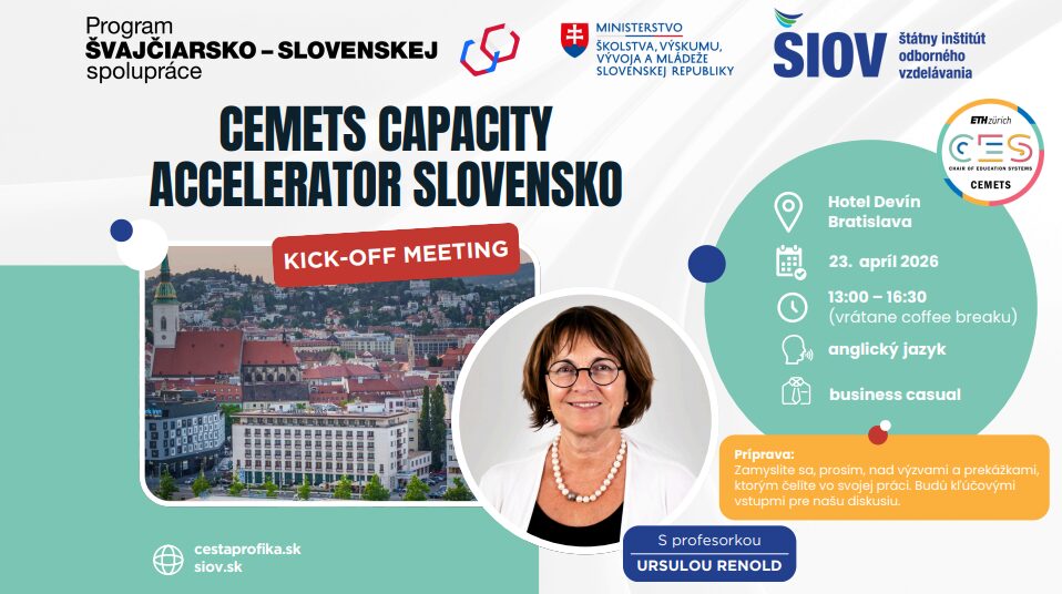 Učiteľka Mgr. Marianna Federičová sa zúčastnila úvodného kick-off meetingu, ktorý je súčasťou Programu švajčiarsko-slovenskej spolupráce CEMETS – Capacity Accelerator Slovensko. Toto úvodné stretnutie oficiálne odštartovalo vzdelávací program zameraný na rozvoj manažmentu odborného vzdelávania a prípravy podľa švajčiarskeho modelu.